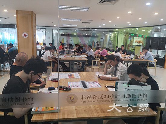 北站社区党群服务中心占地达2800余平方米、为居民一站式提供数十项服务,设有24小时自助便民服务区、首家24小时自助图书馆、开设老年人日间照料中心、人才驿站、社区规划师工作室、琴乐室等。
