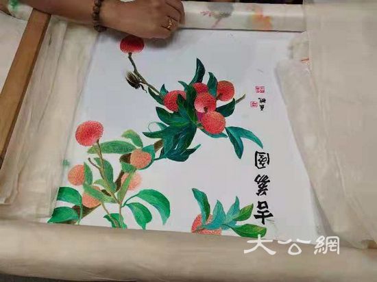 获得彭丽媛赞赏的广绣作品“吉荔图”。(卢静怡摄)