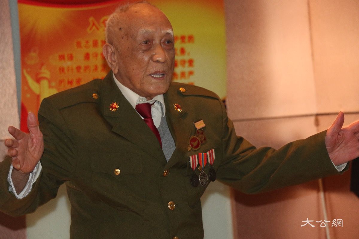另一位讲述者是90岁的吴军仁,当喊到他的名字时,吴军仁大喊一声“到”,并从座位上迅速起身、敬礼。