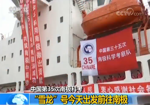 今天(2日)上午,中国第35次南极科考队乘坐“雪龙”号船离开上海 ,前往南极执行科考任务。