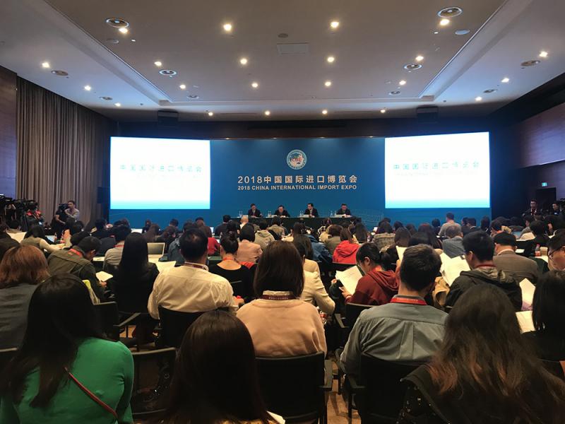 图:首届进博会新闻发布会现场/大公报记者夏微摄