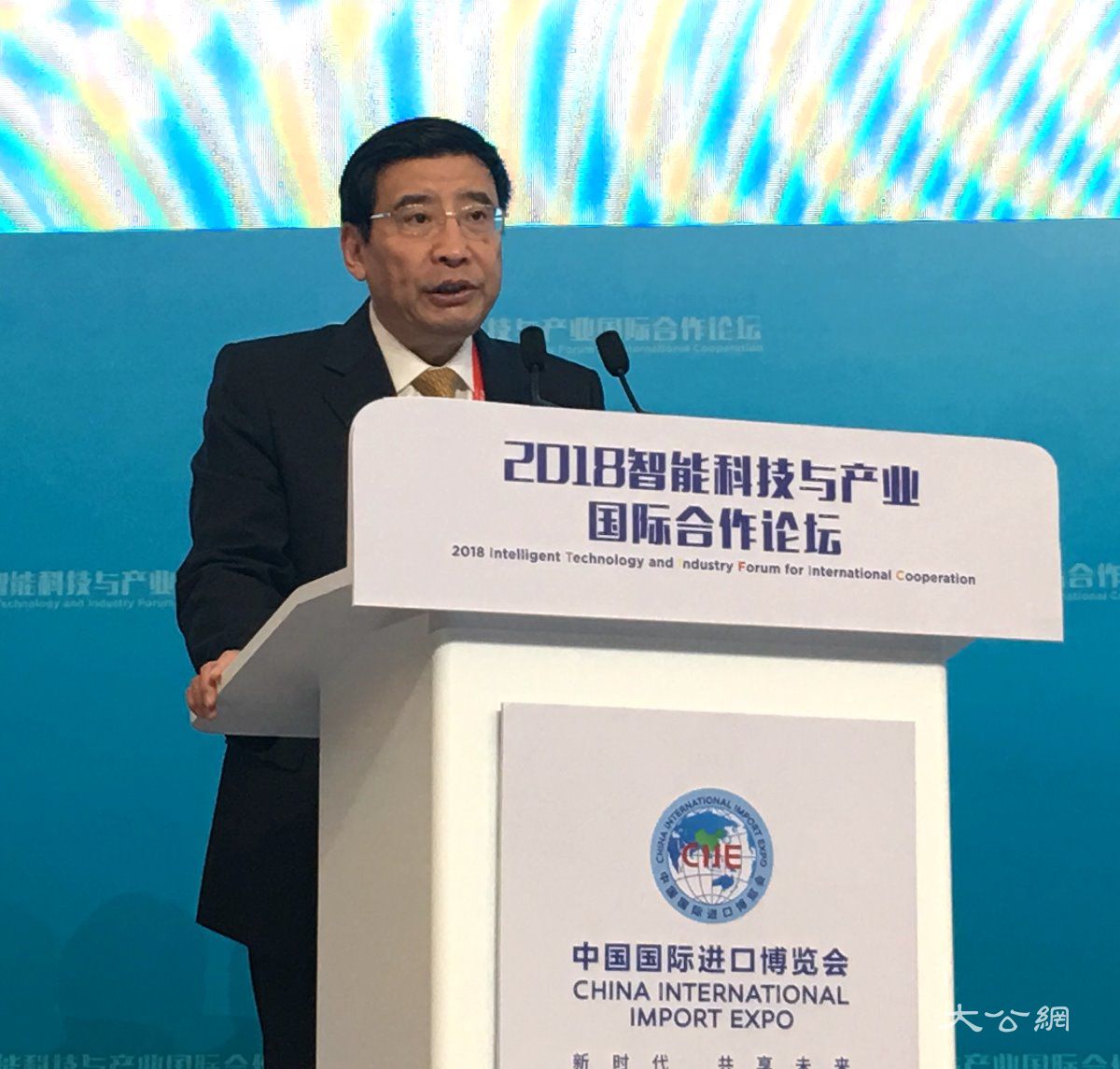 11月6日, 工业和信息化部部长苗圩在“进博会”期间表示中国愿与各国携手推动人工智能持续健康发展 记者陈旻摄影