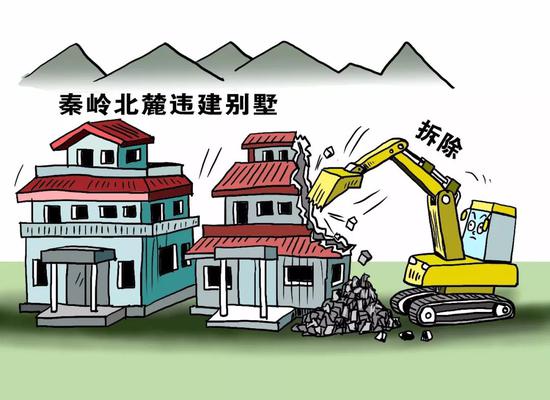 秦岭北麓600多栋违建别墅被拆 图/中新社发 朱慧卿 摄