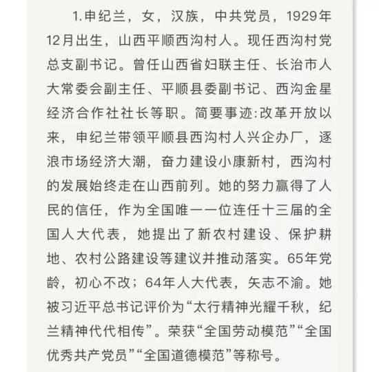 申纪兰入围山西拟推荐改革开放杰出贡献个人名单