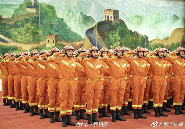 在血与火中经受生死考验的这支队伍,正以新的面貌展现在世人面前;在人民危难时挺身而出的消防英雄,将肩负起更加重大的使命。