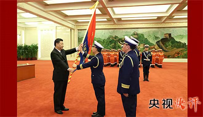 11月9日上午,人民大会堂庄严肃穆,三名仪仗队员护卫着崭新的中国消防救援队队旗,正步行进到主席台前。在这个对消防队伍具有特殊意义的日子,习近平总书记向国家综合性消防救援队伍授旗并致训词。