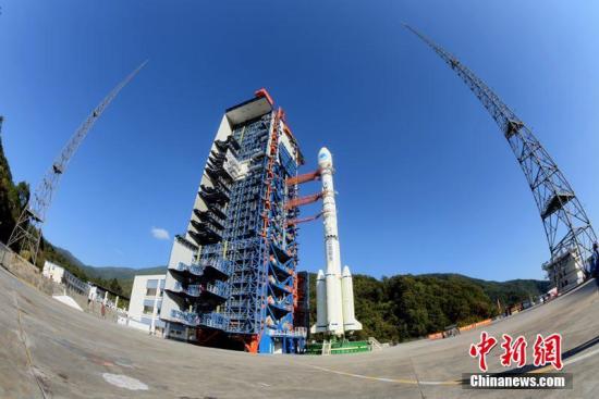 北京时间11月19日2时7分,中国在西昌卫星发射中心用长征三号乙运载火箭,以“一箭双星”方式成功发射第42、43颗北斗导航卫星。此次发射的两颗卫星属于中圆地球轨道卫星,是中国北斗三号系统第18、19颗组网卫星。图为发射前夕,星箭组合体在发射塔架蓄势待发及总装厂房测试。李迪克 摄