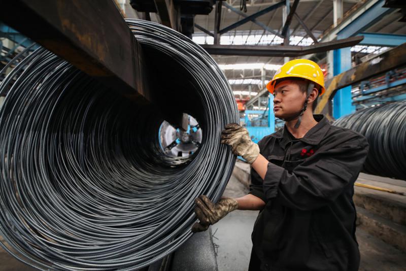 图:江苏连云港市一家钢铁企业工人在生产钢材\资料图片