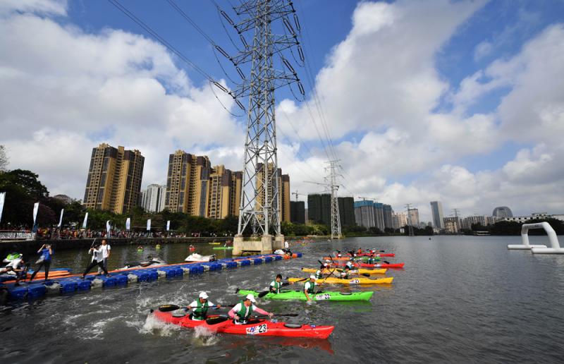 图:《方案》鼓励海南拟建国家体育旅游示范区。图为2018环海南岛国际皮划艇巡回赛\资料图片