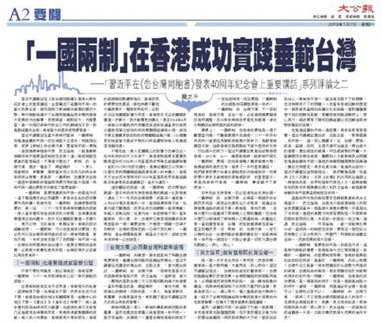 “习近平在《告台湾同胞书》发表40周年纪念会上重要讲话”系列评论之二