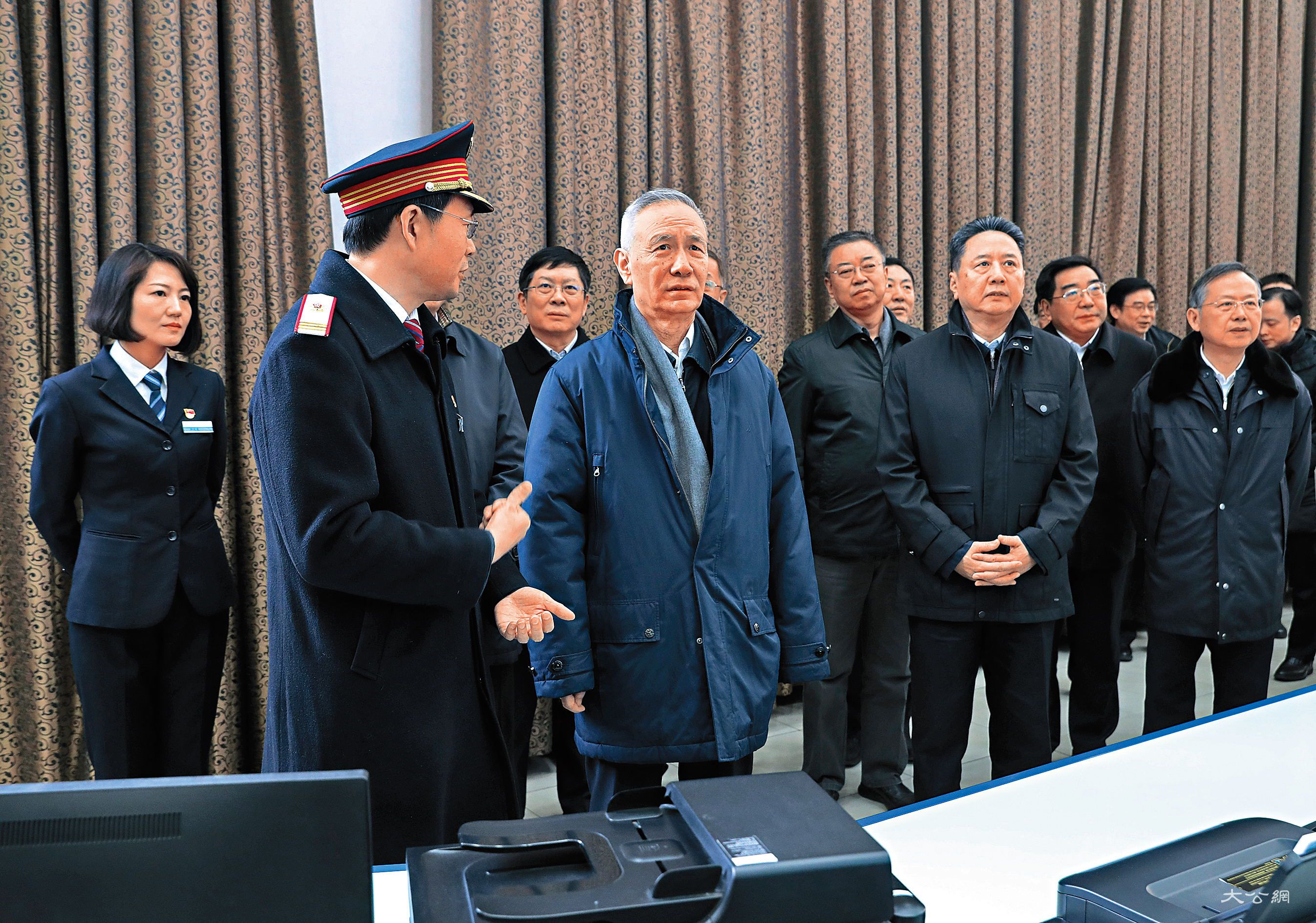 图:中共中央政治局委员、国务院副总理刘鹤1月20日在北京检查春运工作\新华社