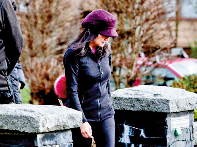 图:华为公司现任副董事长兼首席财务官孟晚舟在保释期间离开温哥华的住所\彭博新闻社