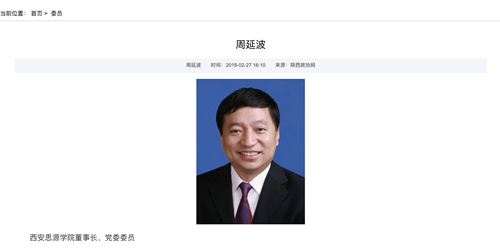 据公开资料显示,周延波出生于1962年,湖北光化人。现为西安思源学院董事长、北京邮电大学世纪学院董事长。据陕西政协网公示,2018年2月起,周延波当选陕西省第十二届政协委员。