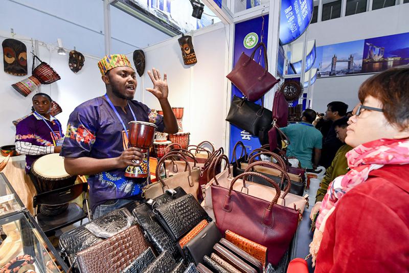图:顾客在海南“冬交会”“一带一路”国际馆选购商品\资料图片