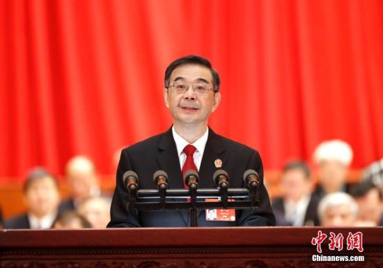 3月12日,十三届全国人大二次会议在北京人民大会堂举行第三次全体会议。最高人民法院院长周强作最高人民法院工作报告。中新社记者 刘震 摄