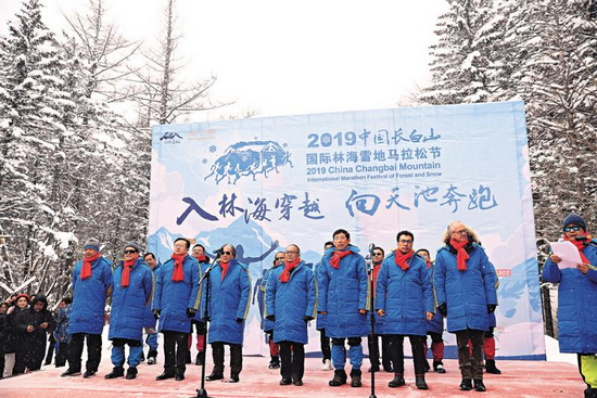图:长白山国际林海雪地马拉松开幕式现场 大公报记者姚勇摄