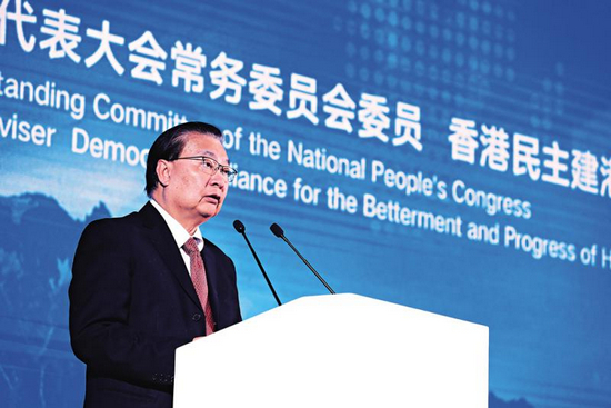 图:全国人大常委会委员、民建联会务顾问谭耀宗致辞 大公报记者姚勇摄