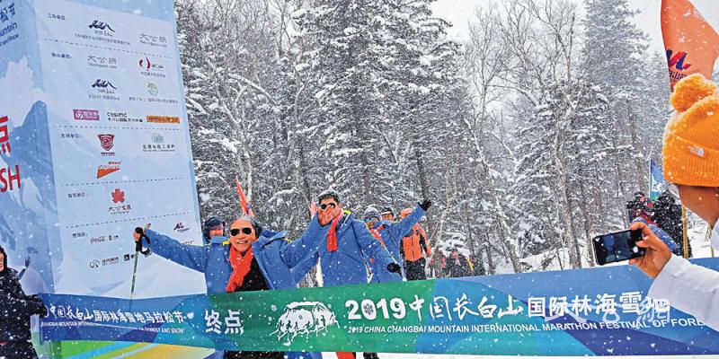 本届长白雪马,香港体育界组成30多人的访问团来到长白山,与来自海内外跑友“携手奔跑”。