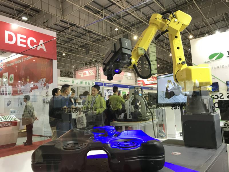 图:在智博会上,一台全自动3D尺寸测量仪在测量\大公报记者卢静怡摄