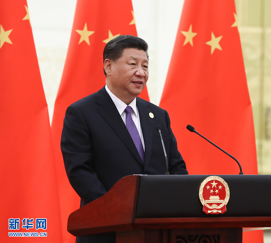 5月14日,国家主席习近平和夫人彭丽媛在北京人民大会堂举行宴会,欢迎出席亚洲文明对话大会的外方领导人夫妇及嘉宾。这是习近平在宴会上发表致辞。 新华社记者 鞠鹏 摄