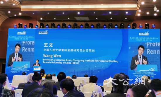 中国人民大学重阳金融研究院执行院长王文发表演讲;记者张帅摄