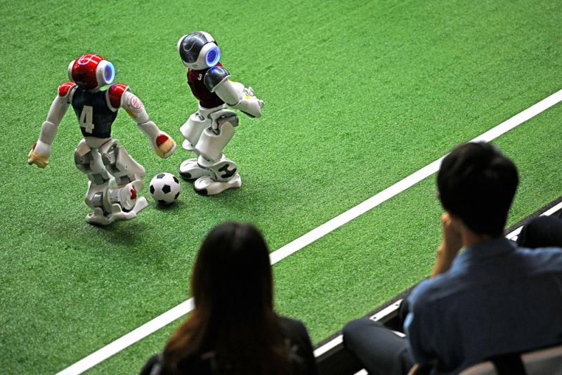 图:第三届世界智能大会上的机器人世界杯比赛/新华社