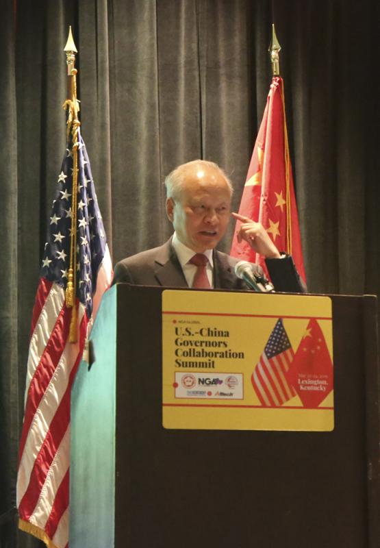 图:5月23日,中国驻美国大使崔天凯在第五届中美省州长论坛上讲话\新华社
