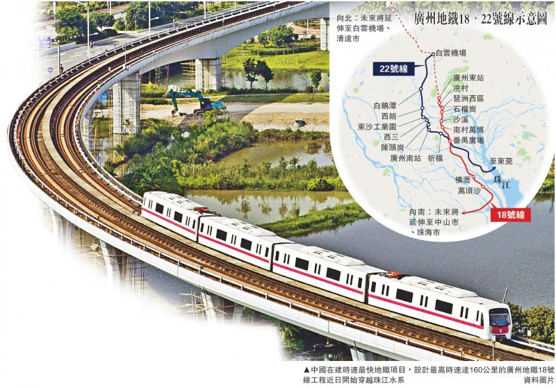 中国在建时速最快地铁项目,设计最高时速达160公里的广州地铁18号线工程开始穿越珠江水系。广州地铁有关负责人3日对记者透露,近期盾构机在全线最长隧道“沙溪站─石榴岗”站区间,成功攻克了系列技术难题,成功下穿珠江。据悉,由于华南地区被称作“地质博物馆”,对盾构施工技术要求极高。为攻克难关,项目采用三维施工技术对项目进行统筹管理,同时探索推动标准化盾构施工方法,大大提高了施工效率和安全质量。\大公报记者 方俊明广州报道