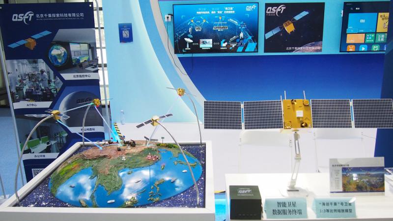 图:民企“千乘探索”早前在京展示“遥感+”空间数据服务系统模型和“海创千乘”号卫星缩放模型\资料图片