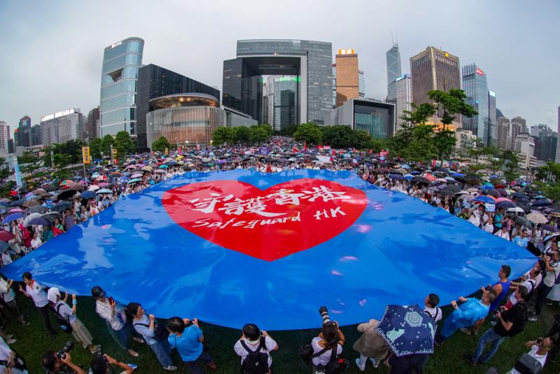 图:7月20日下午,31万香港市民在金钟添马公园参加“守护香港”集会,共同守护香港法治的核心价值,维护法治,反对暴力\中新社