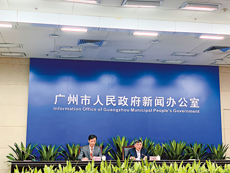 图:8日,广州市科技局副局长王越西在新闻发布会上介绍广州在推动资源共享方面的多项举措\大公报记者黄宝仪摄