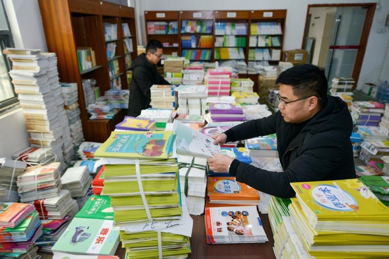图:年初新学期开学前,各地新华书店抓紧做好中小学生教材分类发放工作\资料图片