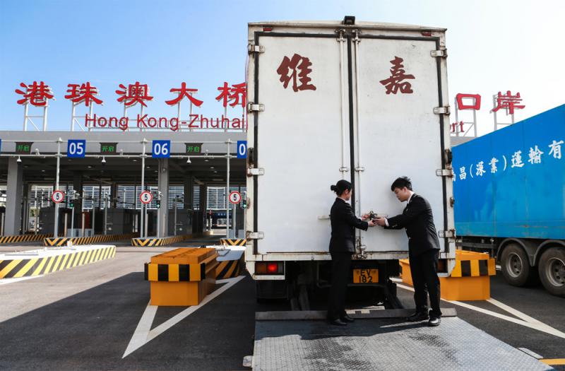 拱北海关相关负责人介绍,得益于该关率先建成的全国海关首个客、货车“一站式”系统,实现通关车辆“一次读取、分别处置、一次抬杆、高效验放”,正常情况下货车通过卡口的海关平均验放时间控制在10秒左右,未被选查的货车从入场到离场时间不超过3分钟,以港珠澳大桥为轴的跨境物流快速通道已然成型。2019年1月至8月,港珠澳大桥珠海公路口岸进、出口整体通关时间分别为3.31小时和0.03小时,比2018年12月分别缩短38%和40%。