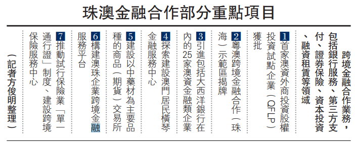 参加峰会的金融专家分析说,跨境金融合作示范区建设顺应了国家扩大金融开放的趋势,有利于先行先试跨境金融政策和落地重点金融合作项目,全力支持澳门特色金融业和经济适度多元发展,努力打造粤港澳大湾区澳珠金融合作发展新增长极。