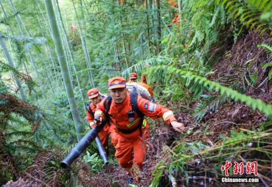 资料图:森林消防员开展林内负重行军。童鹏程 摄