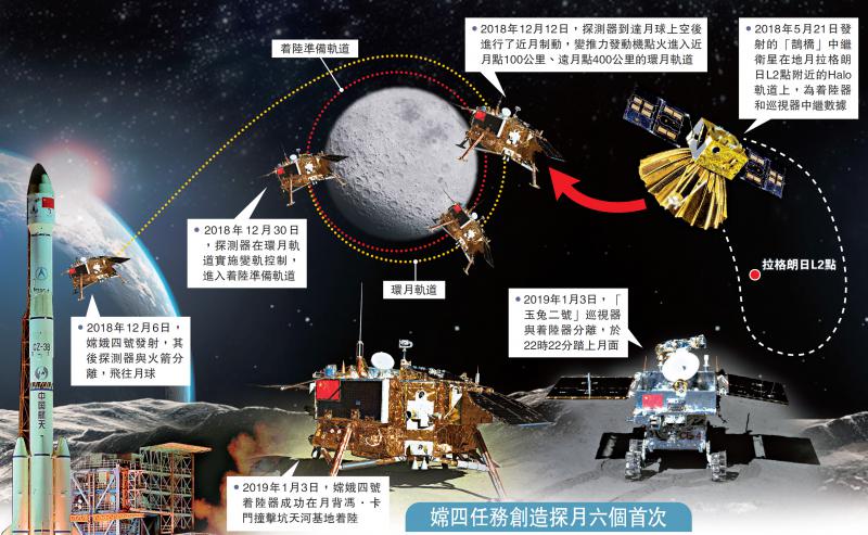 据中国国家航天局介绍,嫦娥四号着陆器和“玉兔二号”巡视器已分别结束月夜休眠期,受光照成功自主唤醒,恢复月面工作,进入第十二个月昼工作期。目前,嫦娥四号在月球背面的工作时长已超过300天,远远超出设计寿命;“玉兔二号”巡视器克服月背复杂地形等障碍,行驶里程也已超过300米,实现了“双三百”的突破。