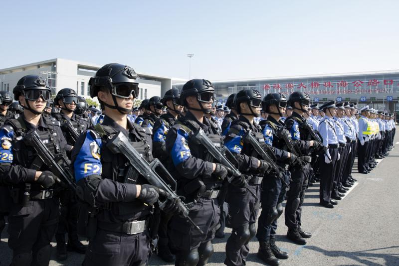 据珠海警方介绍,本次演练分为警力集结、技能展示、反恐处突和集体宣誓四个部分,珠海公安集结了1000余名警力、80多辆警用车辆参加演练,全要素、全流程进行了警务技能展示和实兵对抗演练。