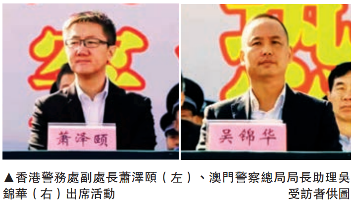 珠海市委书记、市人大常委会主任郭永航、珠海市市长姚奕生、广东省公安厅常务副厅长杨日华、香港警务处副处长萧泽颐、澳门警察总局局长助理吴锦华、珠海市委政法委书记张强、珠海警备区司令员杨清淦、珠海市公安局局长张锐及拱北海关缉私局局长王建元等参加活动。