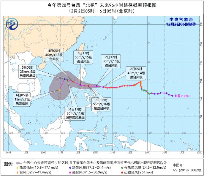 中央气象台监测显示,今年第28号台风“北冕”强度逐渐增强,最强可发展到超强台风级别。预计,“北冕”将以每小时20公里左右的速度偏西方向移动,强度逐渐增强,最强可达超强台风级(16-17级或17级以上,55-65米/秒),并向菲律宾吕宋岛东南部一带沿海靠近,将于3日凌晨在上述沿海地区登陆。之后,“北冕”穿过菲律宾吕宋岛南部,4日凌晨移入南海海面,5日后转向偏南方向移动,并逐渐减弱消失。