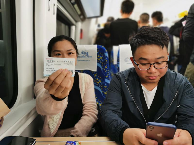 图:12月15日,穗深城际铁路正式通车,冯小姐向记者展示首日车票\大公报记者黄仰鹏摄