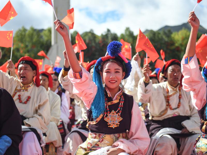 图:群众在拉萨布达拉宫广场前联欢,庆祝新中国成立70周年 资料图片