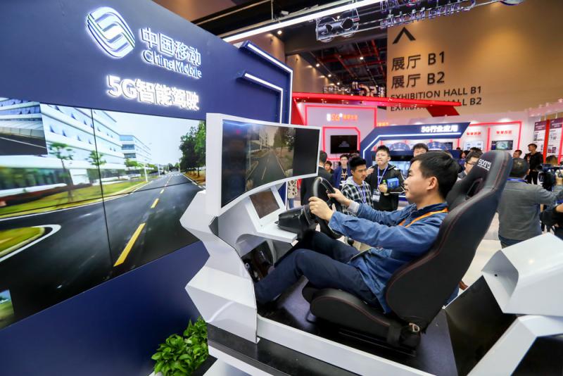 图:参观者在武汉光电子博览会上体验5G智能驾驶 资料图片