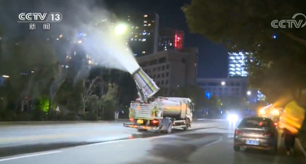 在荆州,晚上9点至次日凌晨2点,52辆作业车同时出发,对全市300个小区,3000万平米所有公共区域和公共设施进行集中消毒。在各个小区里、背街小巷中,工作人员背着喷雾器等设备,进行人工喷洒消毒。