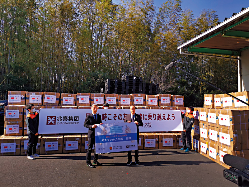 3月17日,一架载有80万只医用外科口罩的飞机从北京飞抵东京成田机场。捐赠口罩的是一家中国民营企业──兆泰集团。在中国驻日大使馆协助下,这些口罩将发放至东京都和北海道两地的医院及老年福利设施。兆泰集团董事长王全向大公报记者表示,之前他们集团曾在日本各界朋友的协助下,从日本采购口罩等防护物资捐赠国内,如今再向出现口罩短缺的日本捐赠可谓“投桃报李”。他坦言,作为一家民营企业,捐赠不是为了赚钱,而是真心想为防疫,为国家,为中日友好做点小事。
