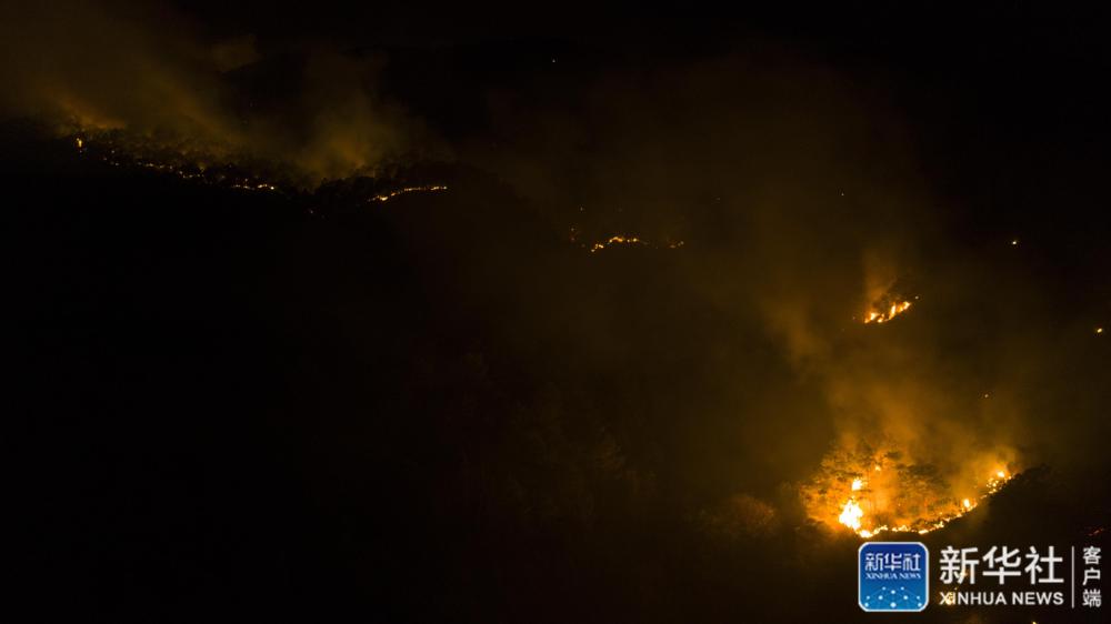 这是3月31日凌晨在四川省西昌市泸山拍摄的森林火灾现场(无人机照片)。新华社记者 王曦 摄