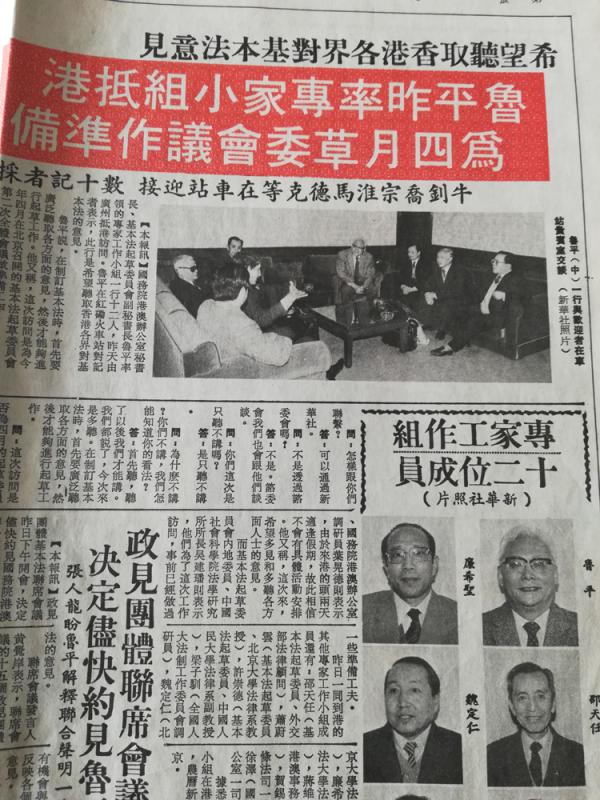 图:大公报1986年报道基本法起草期间廉希圣随专家团赴香港\受访者供图