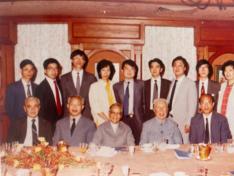 图:1986年,廉希圣(前排右一)与香港法律界人士合影\受访者供图