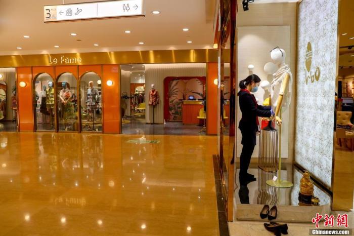 资料图:武汉一家商场的工作人员整理店面等待顾客。 张畅 摄