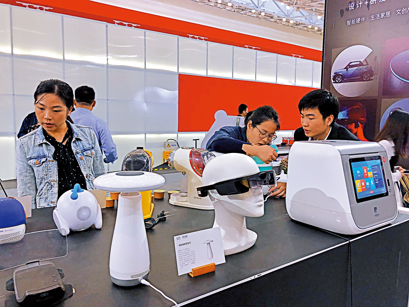 图:挂牌五周年,横琴自贸区累计引进港澳企业近三千五百家。图为企业在横琴展示设计产品\大公报记者方俊明摄