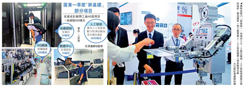 “新基建”成为粤港澳大湾区在“后疫情”时期的经济发力点。广东省统计局最新数据显示,今年一季度,广东省在建或计划开工的“新基建”项目40余个,预计2020年投资超500亿元(人民币,下同)。广东省工信厅负责人透露,力争年内新建6万座5G基站,覆盖超过90%人口。专家认为,香港创科中小企可借大湾区“新基建”浪潮走入内地市场,而广东可在“新基建”大手笔投入时,考虑多利用港澳优势,建设一条既面对国际市场,也面向内地市场的“新基建”产业链。\大公报记者 卢静怡广州报道